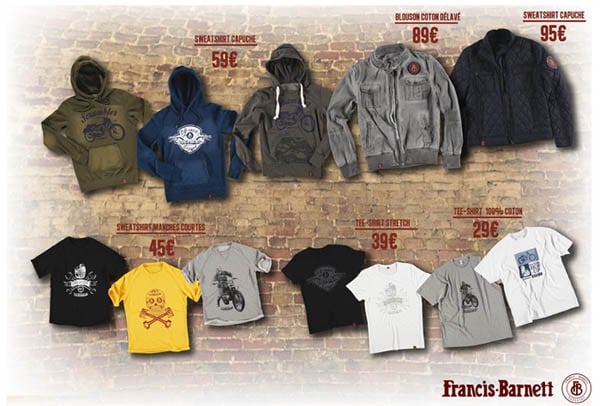 Si sa levée de fonds par crowdfunding n’a guère été fructueuse (cf. échos TM 68), Fancis-Barnett cartonne en revanche sur notre boutique avec ses chouettes tee-shirts et sweats à capuches illustrés de pubs et autres dessins sérigraphiés au look vintage.