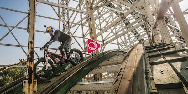 Un ride trial de 1200 m à 33 m du sol, c’est la dernière trouvaille de Julien Dupont, qui a jeté son dévolu sur La Feria de Chapultepec, un parc d’attraction de Mexico, où se trouve un manège de montagnes russes. Backflip, wheelings sur un parcours très étroit, conçu à l’origine pour accueillir le passage d’un wagon non-motorisé.