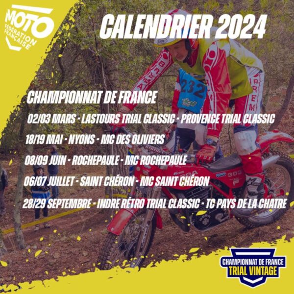 Une nouvelle saison de Trial Vintage se profile à l’horizon, nous espérons qu’elle sera d’aussi bonne qualité que la précédente. Les organisateurs sont motivés et fin prêts, nous souhaitons que les pilotes le seront également pour que chaque épreuve soit une belle fête de notre sport.