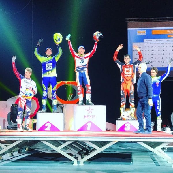 Le vétéran japonais Takahisa Fujinami s’est imposé, devant nos deux Frenchies Alexandre Ferrer et Benoit Bincaz. Notez que l’espagnol Miquel Gelabert n’a pas passé la soirée espérée, entre chutes et problèmes mécaniques. Tout comme un certain Toni Bou… Victime d’une lourde chute sur le dos, le Dieu Vivant du trial a du être admis aux urgences du Mans, sans qu’on connaisse pour l’instant l’étendue des dégâts. Il semblerait néanmoins qu’il n’ait rien de cassé, selon les rumeurs en provenance d’Espagne.