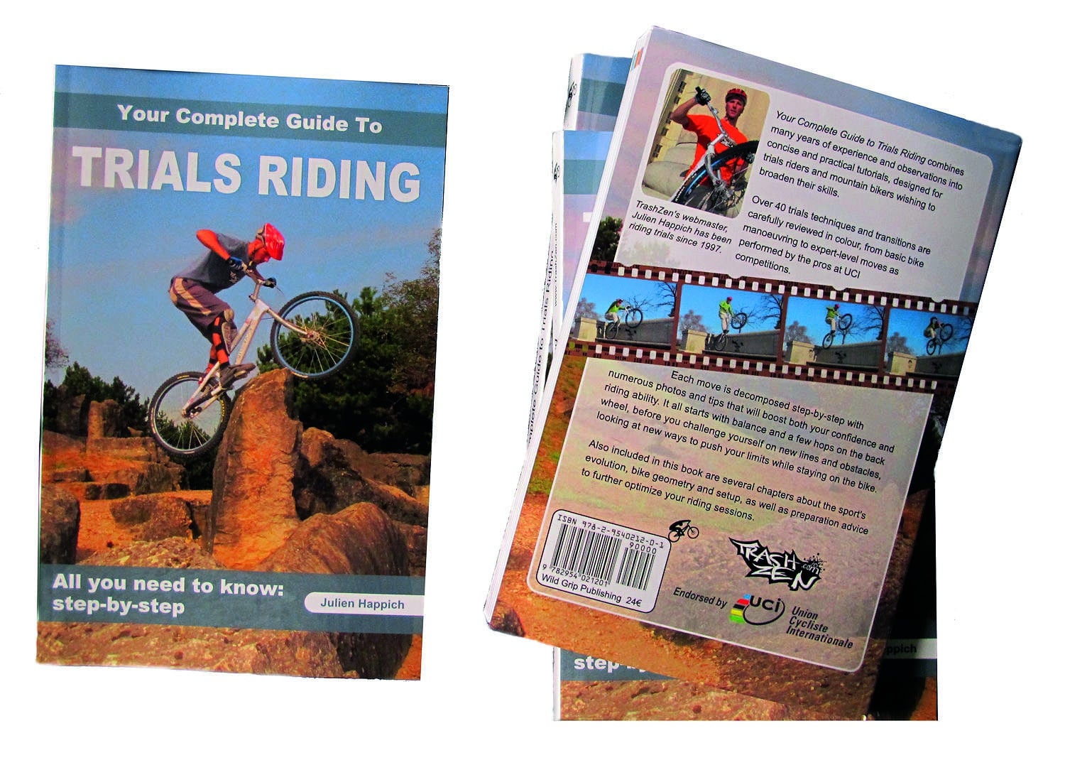 L’auteur des tutoriels du site TrashZen, Julien Happich, s’est fendu d’une petite bible du pilotage vélo trial. Malheureusement non disponible en Français, Your complete guide to trial riding est préfacé par Kenny Belaey et comprend 240 pages A5 détaillant, pas à pas et à grand renfort de photos de champions, plus de 40 situations et techniques de franchissement. Un bouquin soutenu par l’UCI.