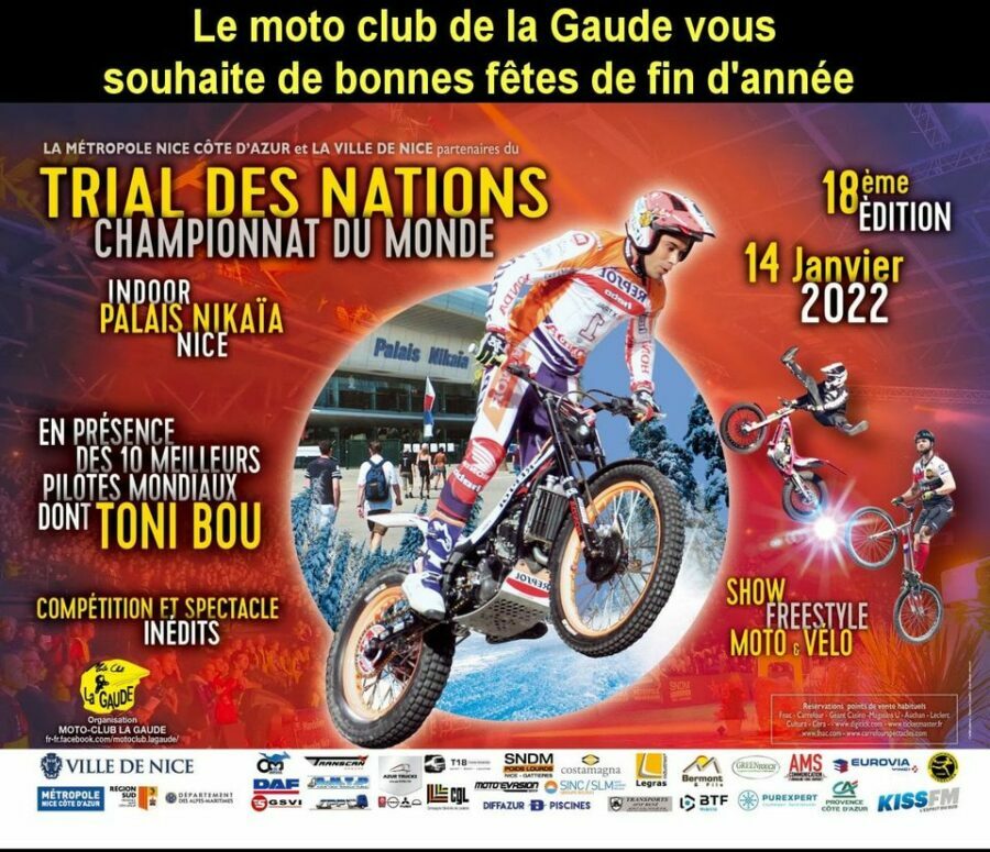 C’est au Palais Nikaia à Nice, que le Championnat du Monde du Trial des Nation aura lieu le 14 janvier 2022 à 20h30.